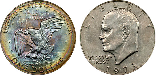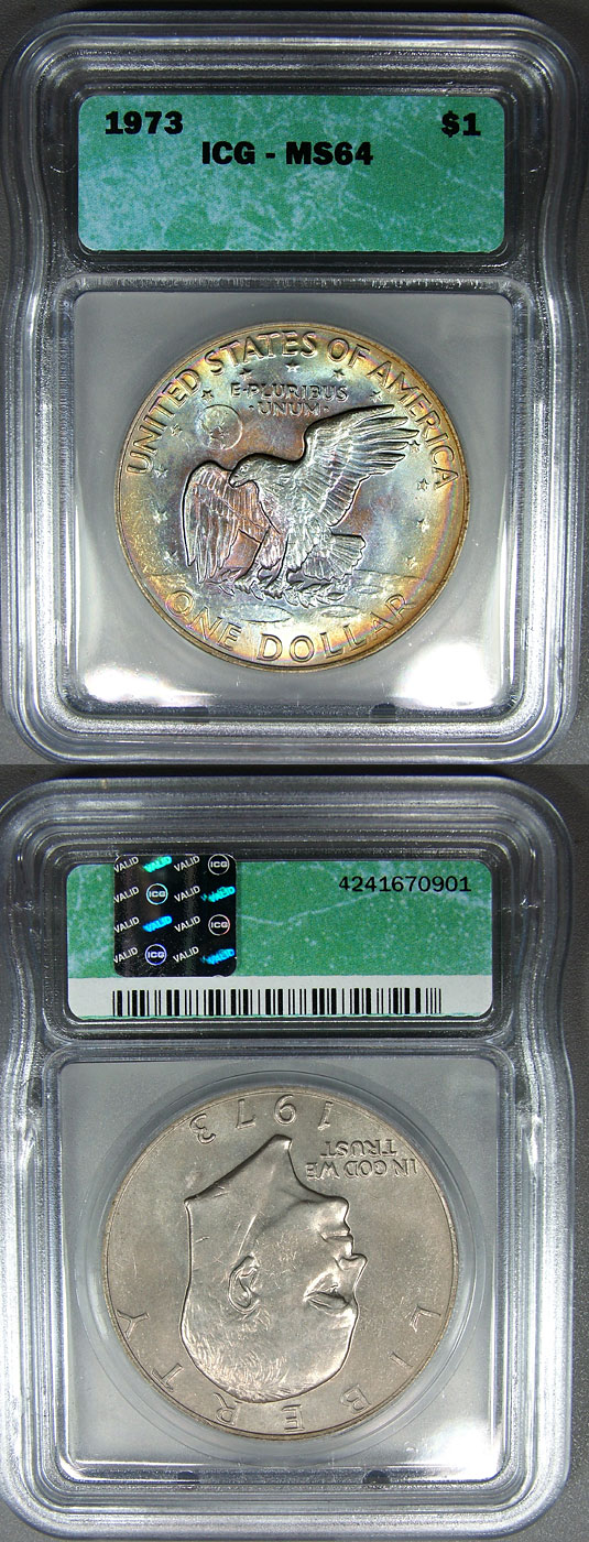 1973 $1 ICG MS64 Rainbow Toned Ike Dollar