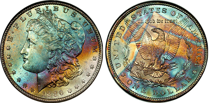 rainbow Morgan dollars.
