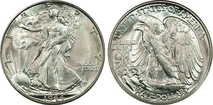 1944-S 50c PCGS MS66 Frosty Lustrous Walker