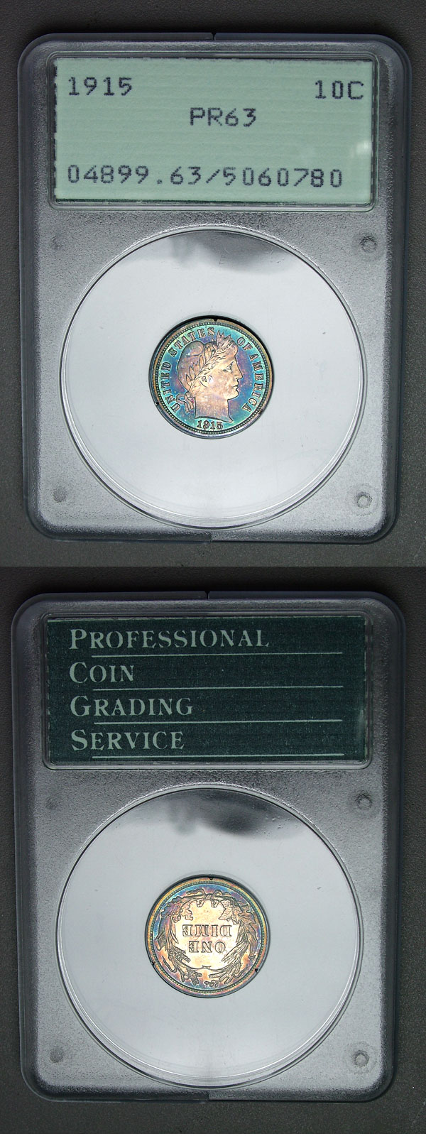 1915 10c PCGS PR63 Rattler Monster Blue Proof Barber Dime