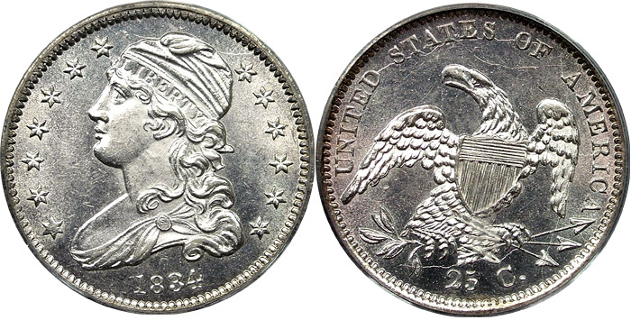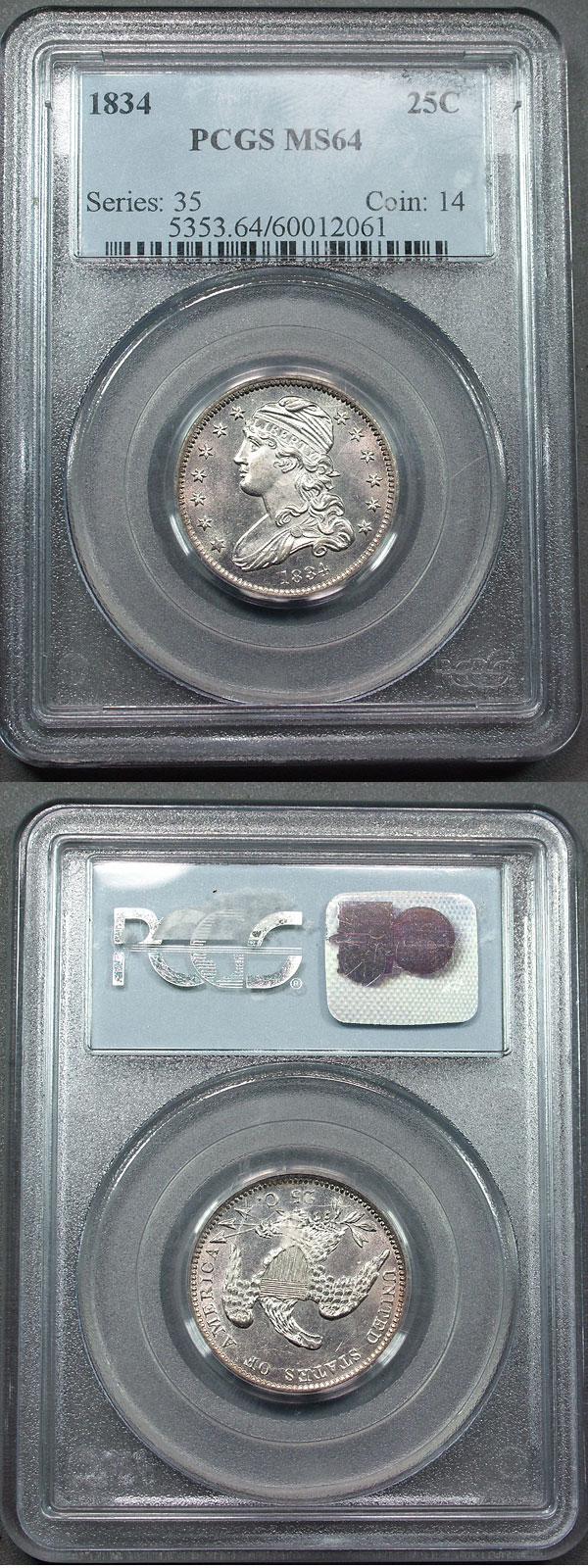 1834 25c PCGS MS64 Blazing Semi-Prooflike Bust Quarter