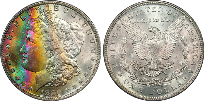 View the largest gallery of high-end and Monster rainbow toned Morgan dollars, an informational guide on how to tell natural vs. artificial toning, learn to price toned Morgans, view auction results of rainbow Morgans, and view what characteristics to look for in high-end toned rainbow Morgan dollars.