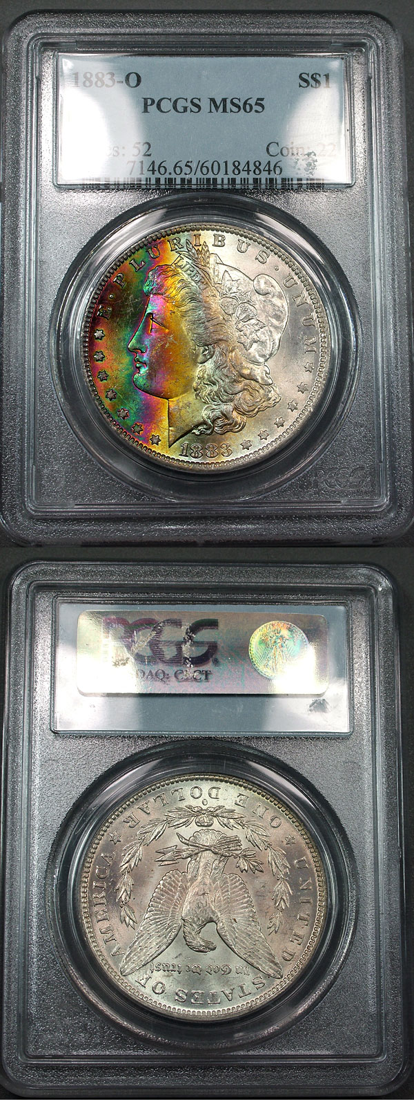 1883-O $1 PCGS MS65 Banded Rainbow Toned Morgan