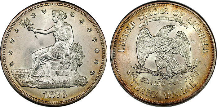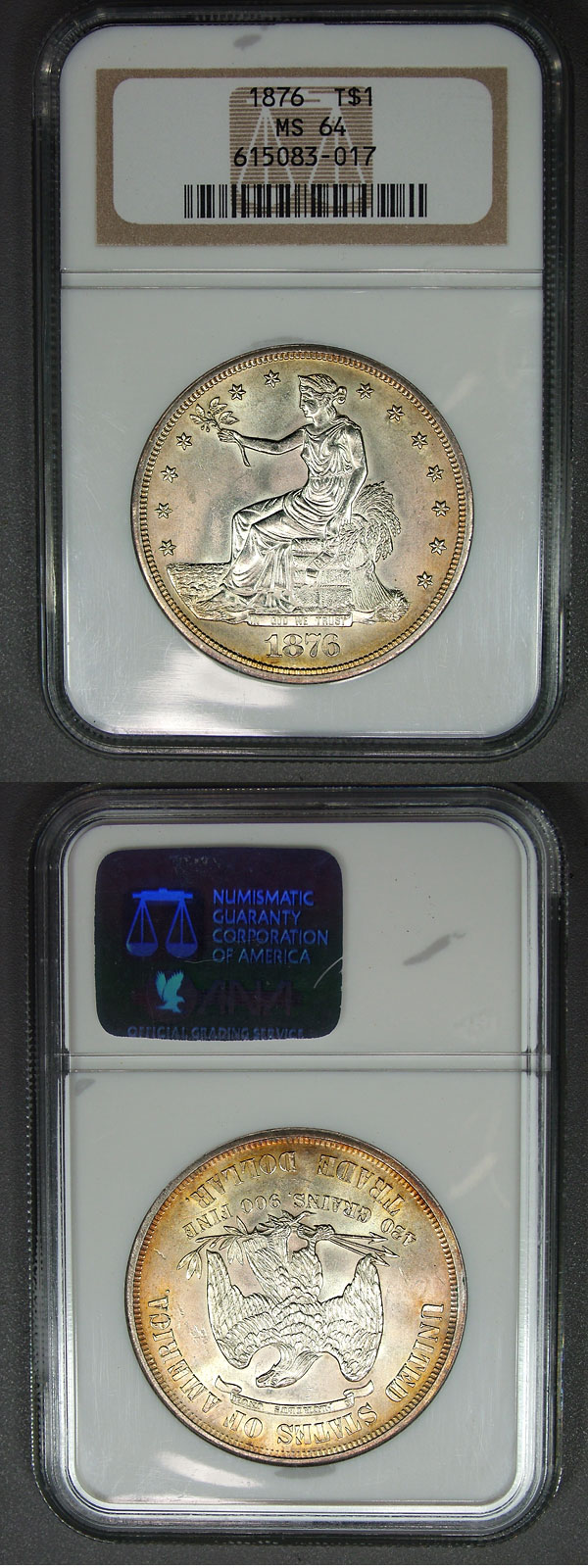 1876 $1 NGC MS64 Bright and PQ Trade Dollar