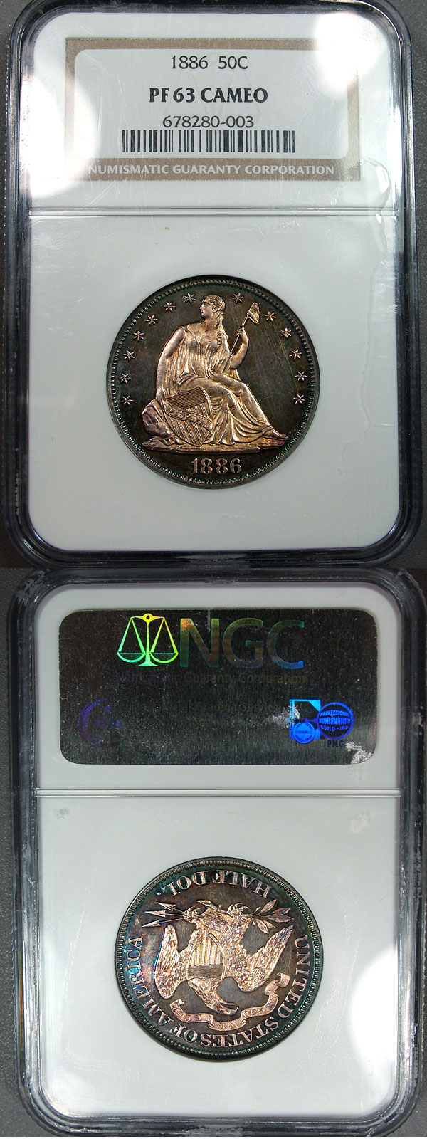 1886 50c NGC PF63 CAMEO Toned PQ Proof Seated Half