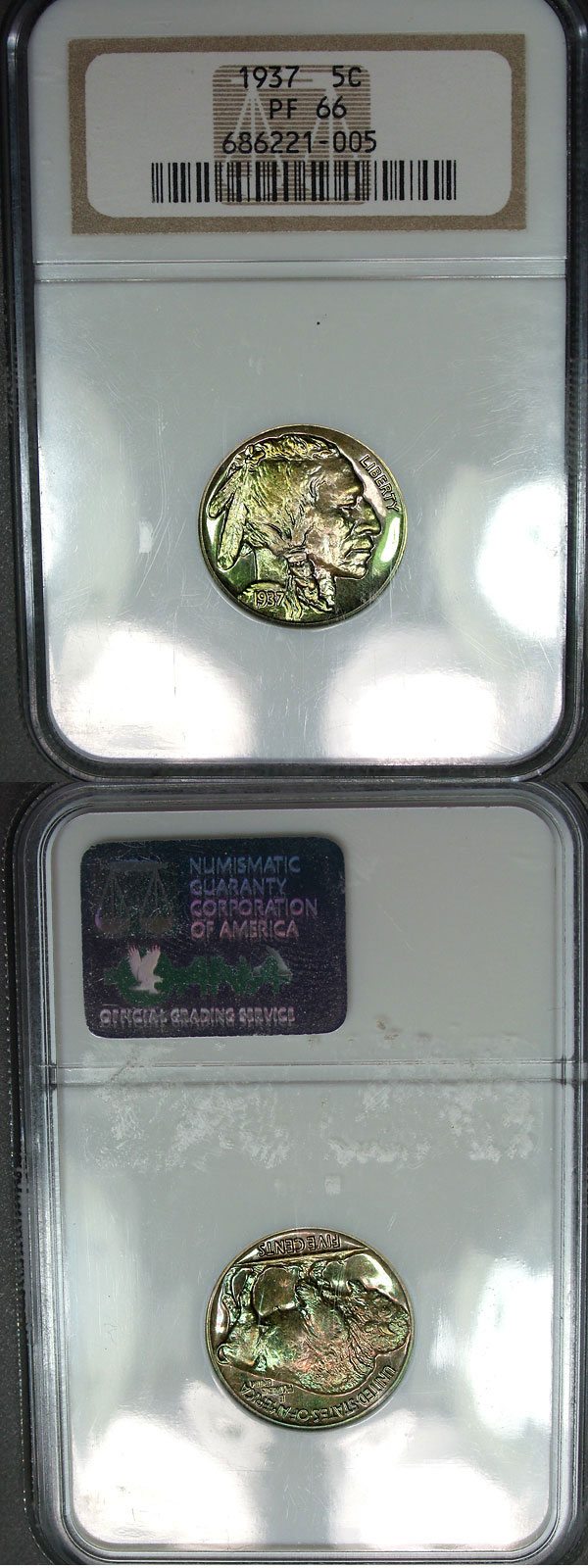1937 5c NGC PF66 Dramatic Lime Green Toned Proof Buffalo