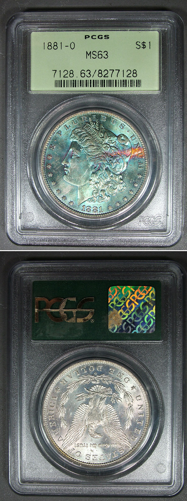 1881-O $1 PCGS MS63 Tesla Shock Rainbow Toned Morgan