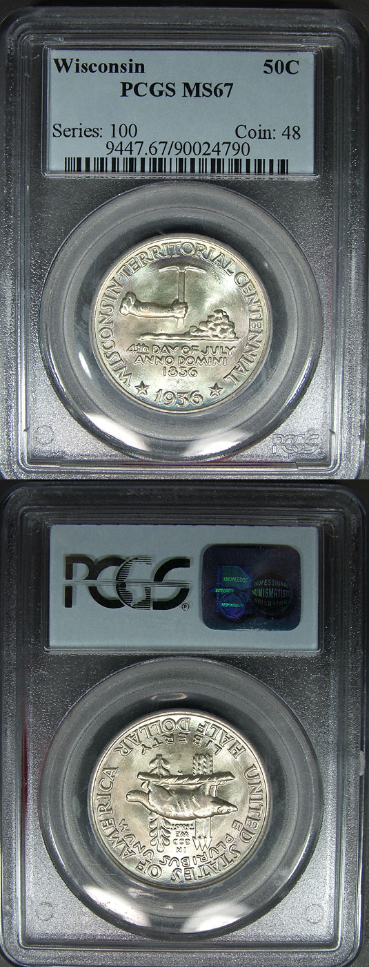 1936 50c PCGS MS67 Pearlescent Toned Superb Wisconsin