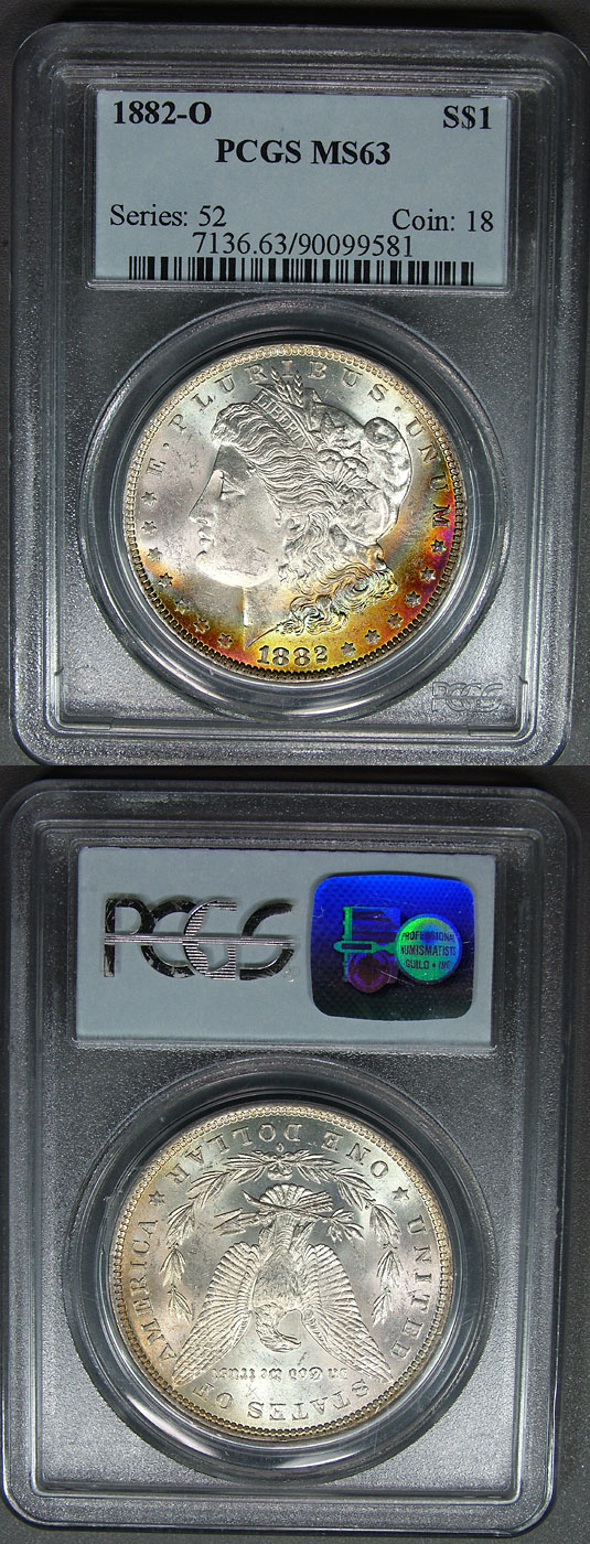 1882-O $1 PCGS MS63 Candy Rainbow Toned Morgan