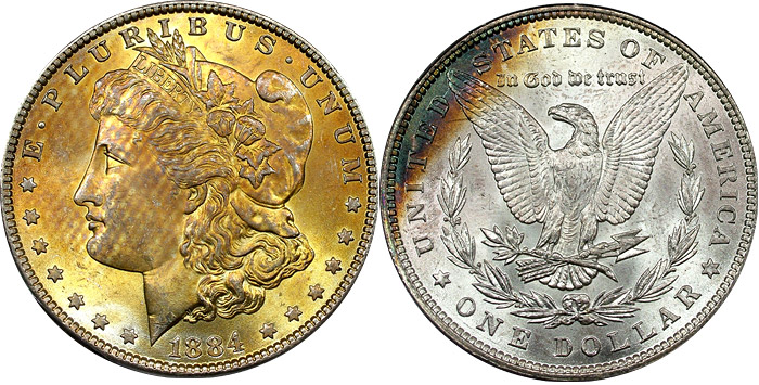 1884 $1 PCGS MS63 Toned Morgan - Golden Freckles