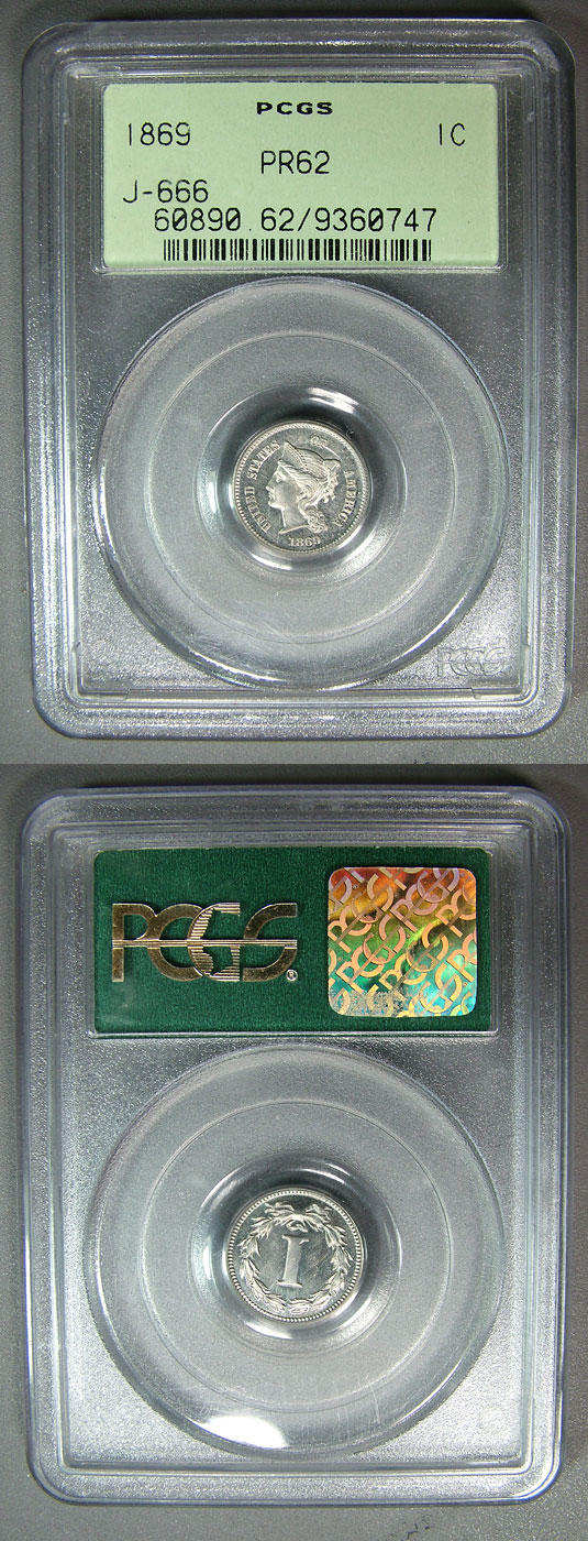 1869 1c PCGS PR62 Longacre Pattern Cent - Judd 666