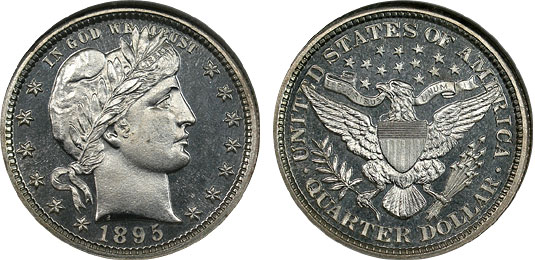 Superb 1895 Proof Barber Quarter is a must have for the proof collector. Bold and ultra frosty, the devices swim in dark mirrored fields. A wonderful example sure to please.