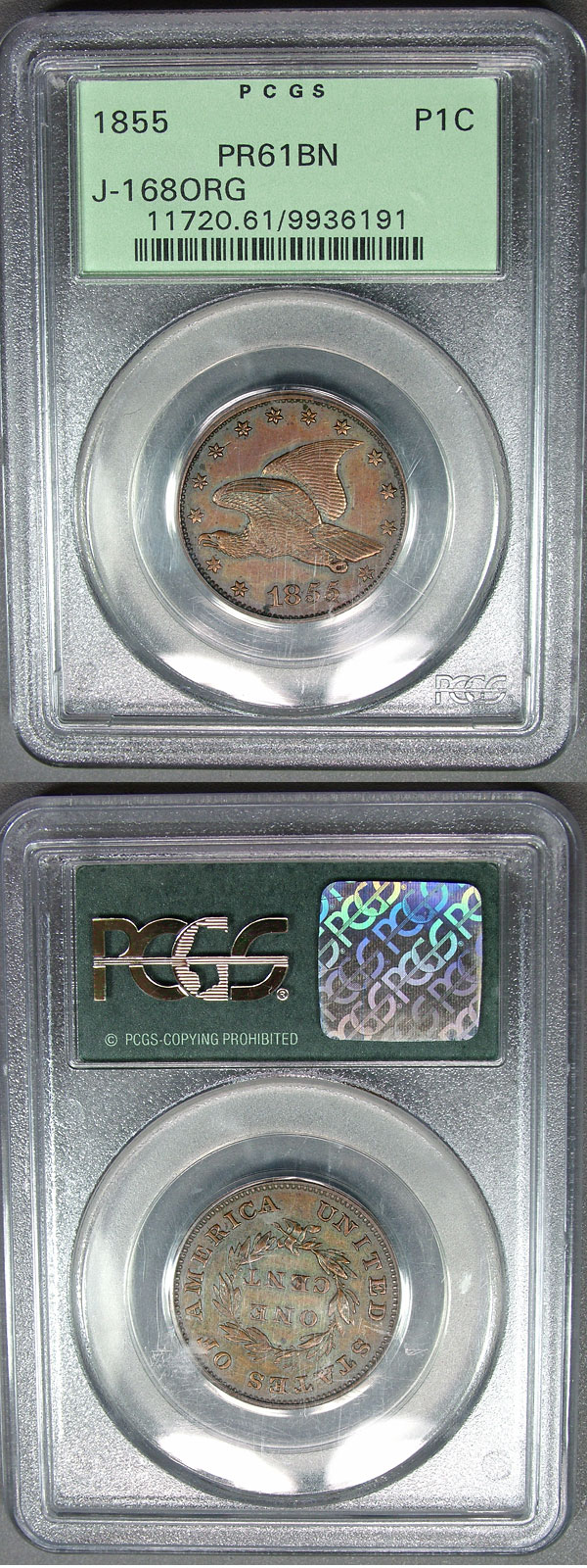 1855 1c PCGS PR61 J-168 Flying Eagle Cent Pattern - Original