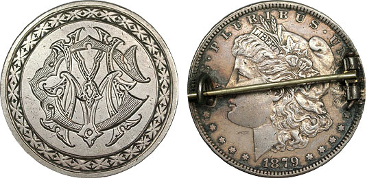 1879 $1 Morgan Silver Dollar Love Token Pin - MMC