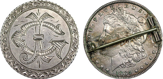 1884 $1 Morgan Silver Dollar Love Token Pin - JG