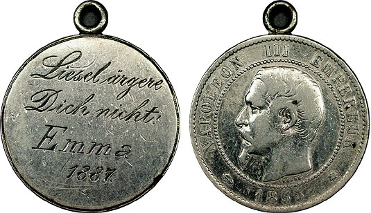 1855 Silver France Napoleon III Love Token - Emma 1887