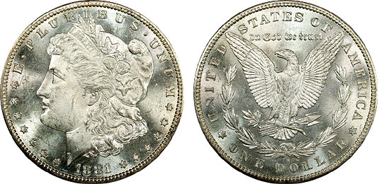 This pretty Morgan dollar exhibits semi-pl fields (deeper on the obverse) and essentially white surface with frosty devices.