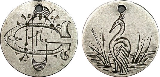 Unique U.S. Seated Dime Love Token - "GCF" with Bird on Reverse. You'd be Loon-ey to take a flyer on this interesting love token!