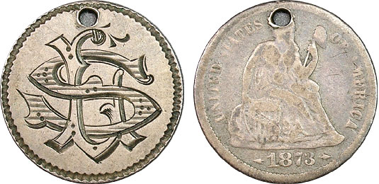 1873 U.S. Seated Dime Love Token Engraved - LS