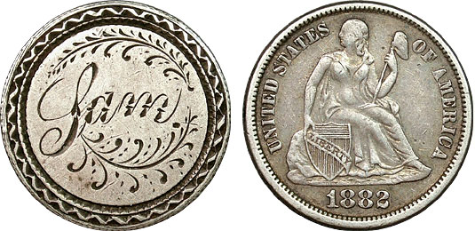 1882 U.S. Seated Dime Love Token Engraved - Sam
