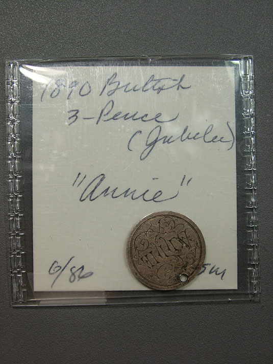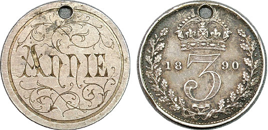 1890 British 3-Pence (Jubilee) Love Token Engraved - "Annie"