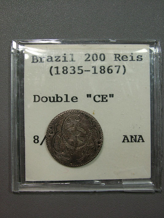 Brazil 200 Reis (1835-67) Love Token Engraved CE, CE