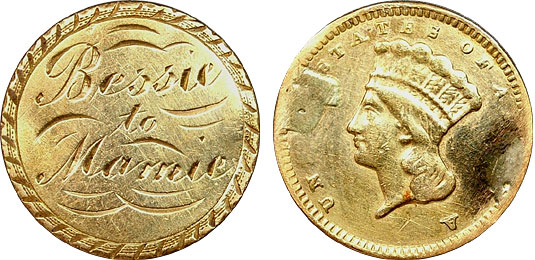 U.S. Type III Gold Dollar Love Token -Bessie to Mamie