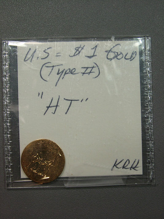 U.S. Type II Gold Dollar Love Token Engraved - "HT" Poor Miss Liberty, it appears she was scraped up pretty good and the culprit appears to be some vandal with the initials "HT" Luckily for us Miss Liberty has quite the large family, luckily for you this love token found her way to eBay.