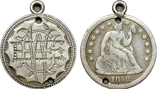 1858 U.S. Seated Dime Love Token Engraved - WEE