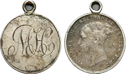 British 3-Pence Love Token Engraved - MH A long ago developed story of love and devotion led to the historic discovery of such a wondrous love token. Once the government minted 3-pence, abducted from circulation by a deeply afflicted man. Now yours to bestow upon your favorite "MH" Your ladies initials are not "MH" you say? Trust me, tell her she's a "Major Hottie" and you'll be back asking us for more love tokens!