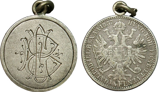 1851 Austrian Quarter Florin Love Token Engraved - BE