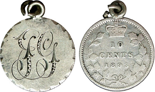 1893 Canadian Dime (Round Top 3) Love Token - JG - RARE!