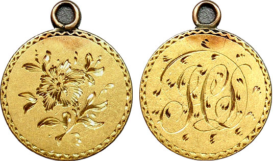 U.S. Type I Gold Dollar Love Token Engraved - HS, Flowers