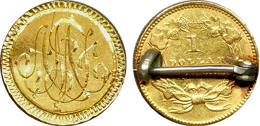 Worn as a pendant with pin soldiered to obverse, this lovely and unique token is elegantly engraved in an attractive Victorian script. This token will please the toughest of critics. Choic in every way!