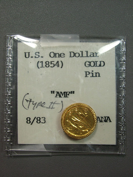 As elegant as she is beautiful: 1854 U.S. Type II Gold Dollar Love Token Engraved - "AMF"