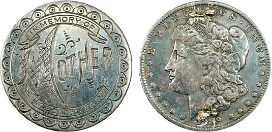 1889 $1 US Morgan Dollar Love Token – In Memory of Mother, Aged 78 Years