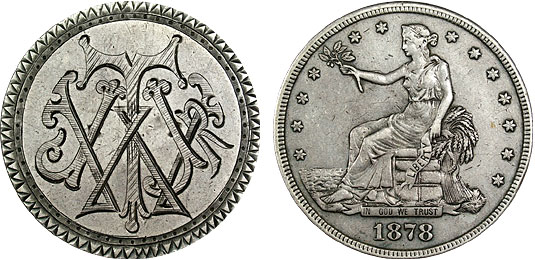 1878 $1 US Trade Dollar Love Token Engraved – WJT Jr.