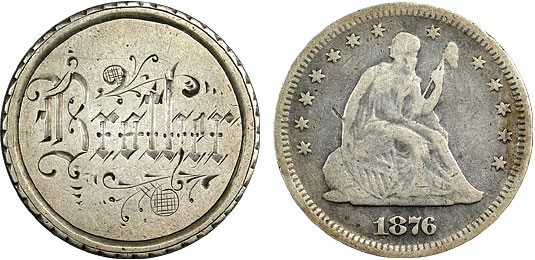 1876 25c US Seated Quarter Love Token – Brother