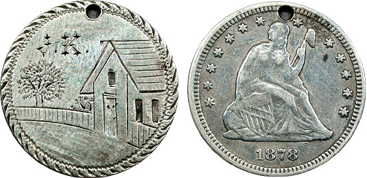 1878 25c US Seated Quarter Love Token Home Pictorial – JK
