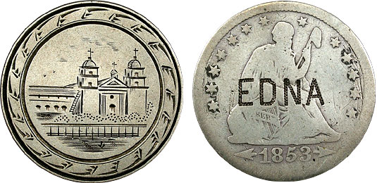 1853 25c US Seated Quarter w/arr. Spanish Mission Pictorial – EDNA