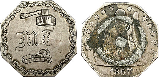 1857 25c US Seated Quarter Love Token Axe Pictorial – MT