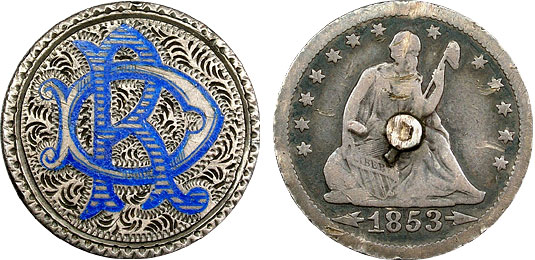 1853 25c US Seated Quarter Love Token Enameled – DR