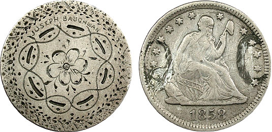 1858 25c US Seated Quarter Pictorial – Joseph Baughman