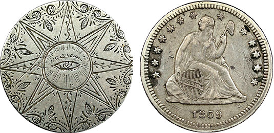 1859 25c US Seated Quarter Pictorial – All Seeing Eye