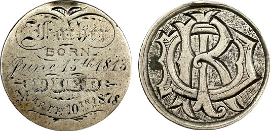 Date? 25c? US Seated Quarter Love Token – Mother Born & Died