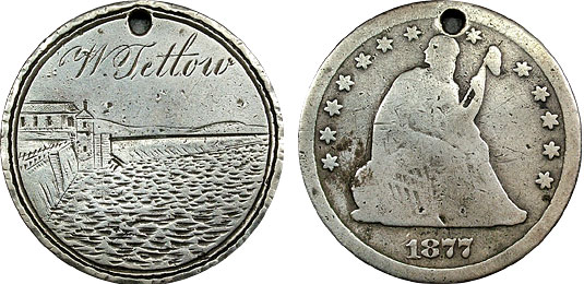 1877 25c US Seated Quarter Love Token Seawall Pictorial – W Tettlow