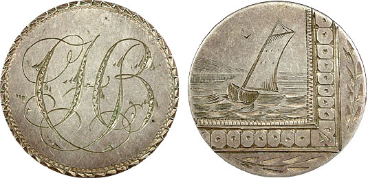 Date? 25c US Seated Quarter Love Token Sailboat Pictorial CHB