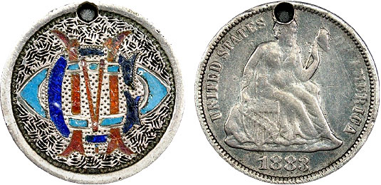 1883 10c US Seated Dime Love Token Enameled – CMO
