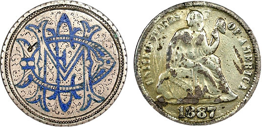 1887 10c US Seated Dime Love Token Enameled – DEM