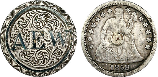 1858 10c US Seated Dime Love Token Enameled – AEW